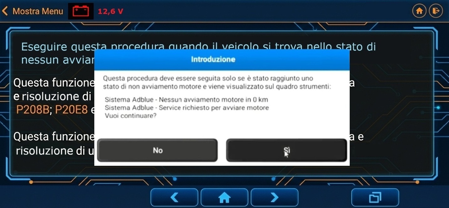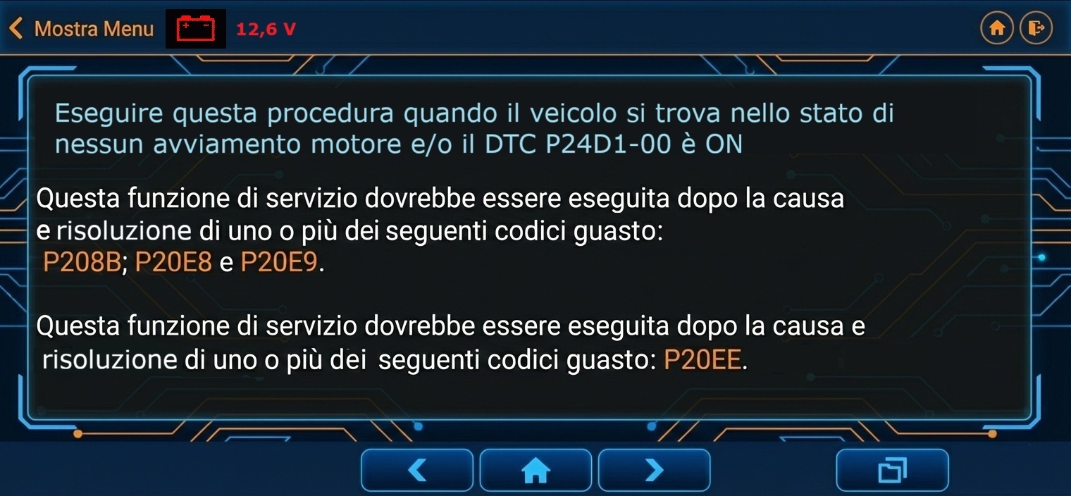La procedura serve a parametrizzare nuovamente la centralina motore per la gestione specifica dell’SCR.