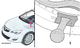 Smontare il pannello di rivestimento dal batticalcagno della portiera anteriore destra. Staccare parzialmente la guarnizione di tenuta del vano portiera anteriore. Applicare una fascetta di protezione sull'area indicata nella figura. Utilizzando un martello e un attrezzo adatto (utensile per carrozzieri), aumentare la tensione nella giunzione della carrozzeria.