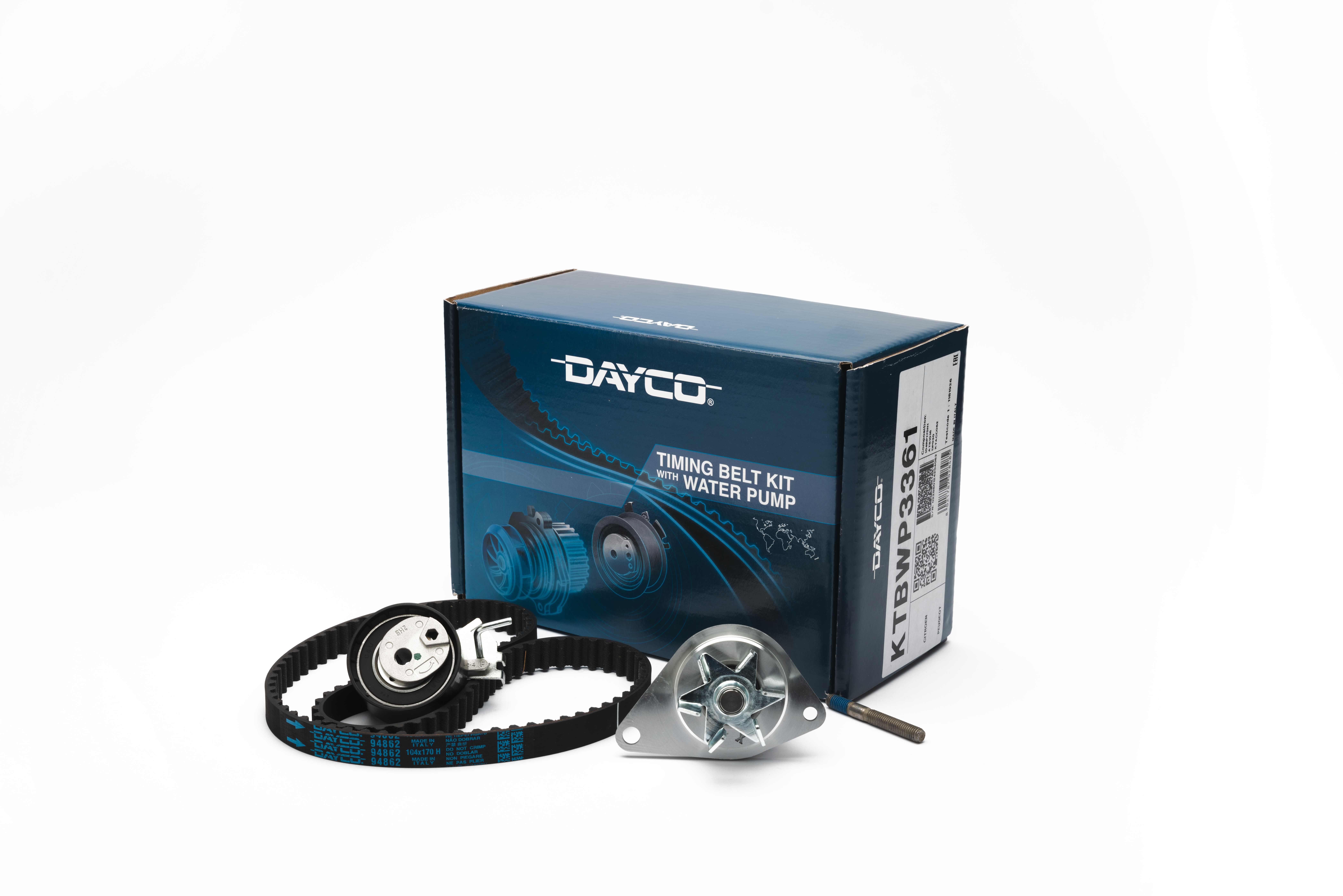 All'interno del kit Dayco KTBW si possono trovare: una pompa dell'acqua e la relativa guarnizione, i tenditori folli, un tenditore automatico, bulloni e una cinghia di distribuzione; in altre parole, tutti i componenti essenziali e necessari per eseguire una riparazione completa.