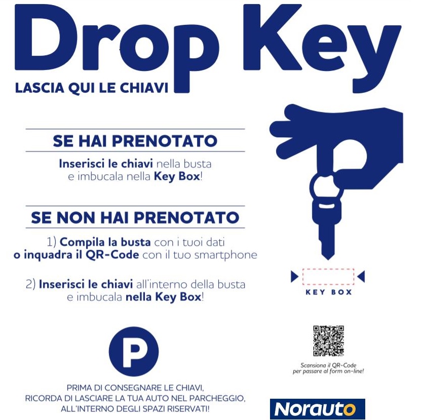 Parliamo quindi di "Drop Key", un nuovo servizio Norauto che permette ai clienti di prenotare interventi e prestazioni in qualunque momento, anche durante le ore di chiusura dei centri Norauto e senza contatto diretto con lo staff dell’azienda. È possibile usufruire di questa possibilità, 24 ore su 24, in quattro centri Norauto in Italia: Torino (via Monginevro, 162), Moncalieri (TO) (Corso Savona, 85), Olgiate Olona (VA) (Via San Giorgio, 24) e Ferrara (Via Francesco Luigi Ferrari 5).